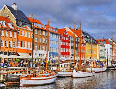 Harmonie - Kopenhagen is de hoofdstad van Denemarken. Nyhavn is een grote toeristische trekpleister. 1:Aan de haven vindt men een huizenrij in verschillende kleuren. 2:Den Lille Havrue is de kleine zeemeermin, een wereldberoemd standbeeld in Kopenhagen. 3:Amalienborg ligt in het stadsdeel Frederikstaden en is de residentie van de Deense vorsten.